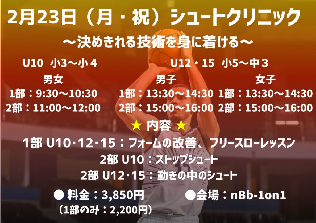 緊急開催!!2月23日(月・祝)シュートクリニック開催!!